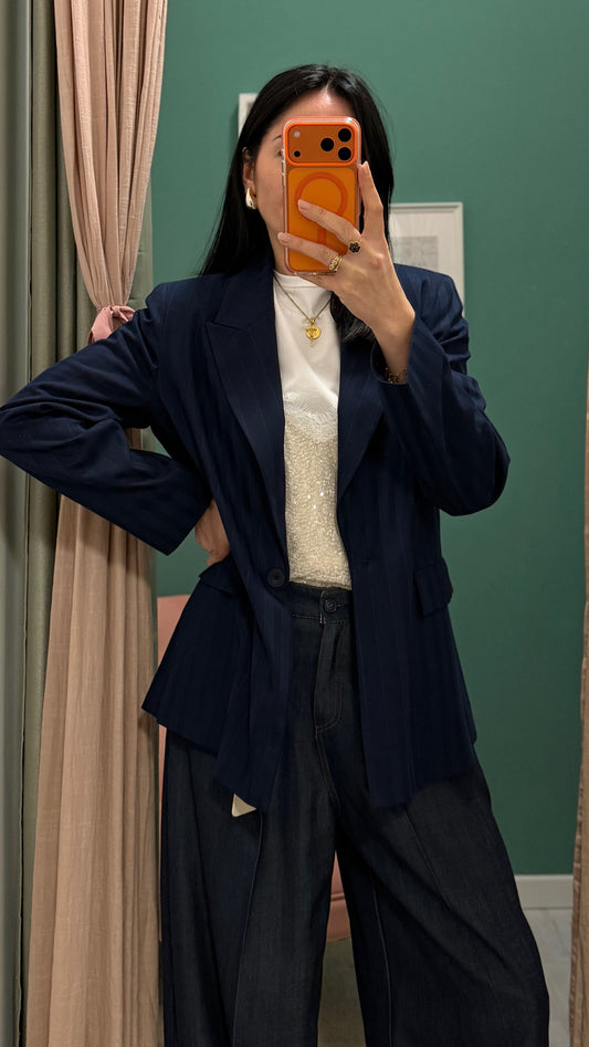 Susy mix - giacca a righe tono su tono monopetto