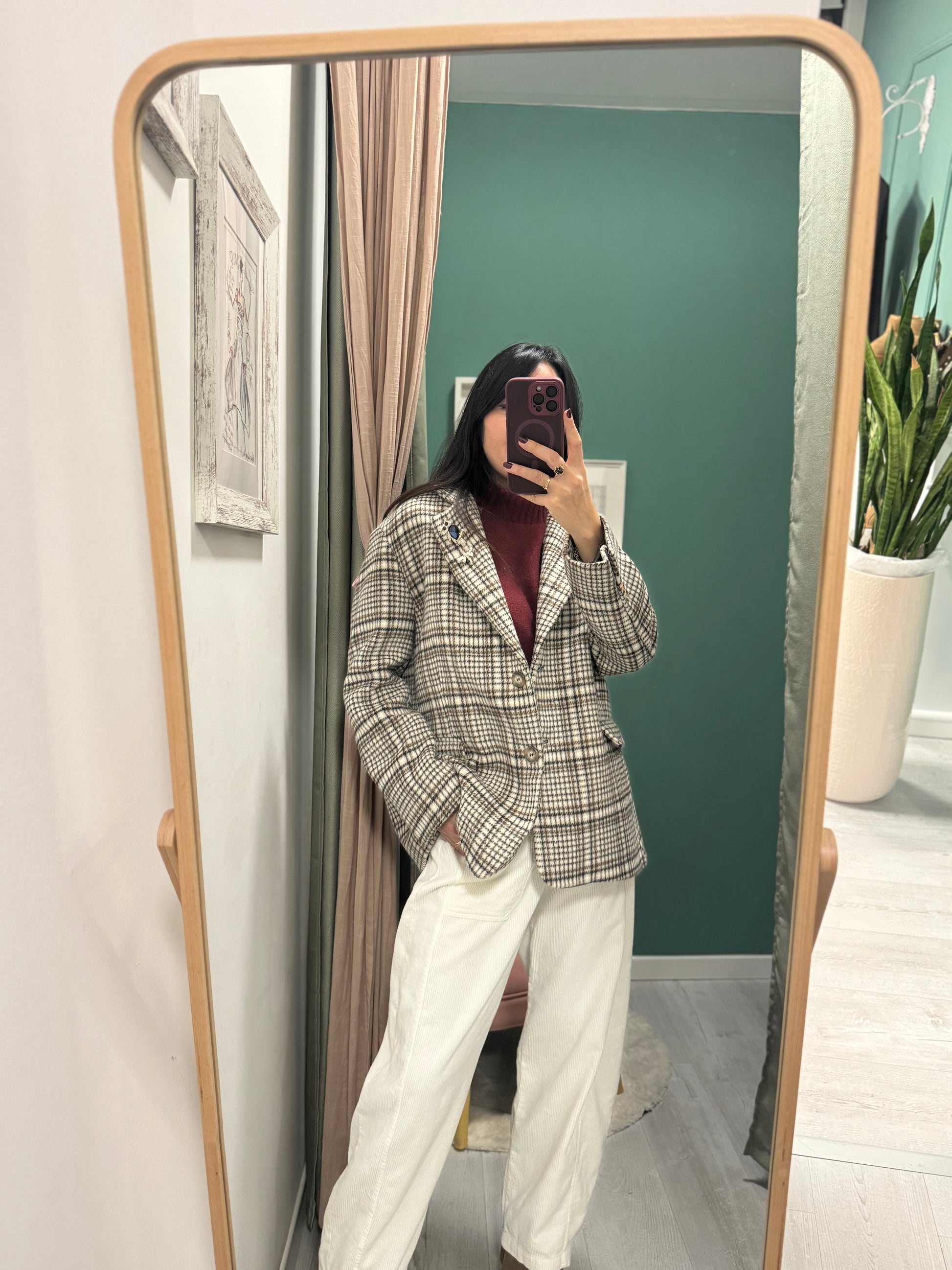 Giacca molto morbida e calda over size con spille.