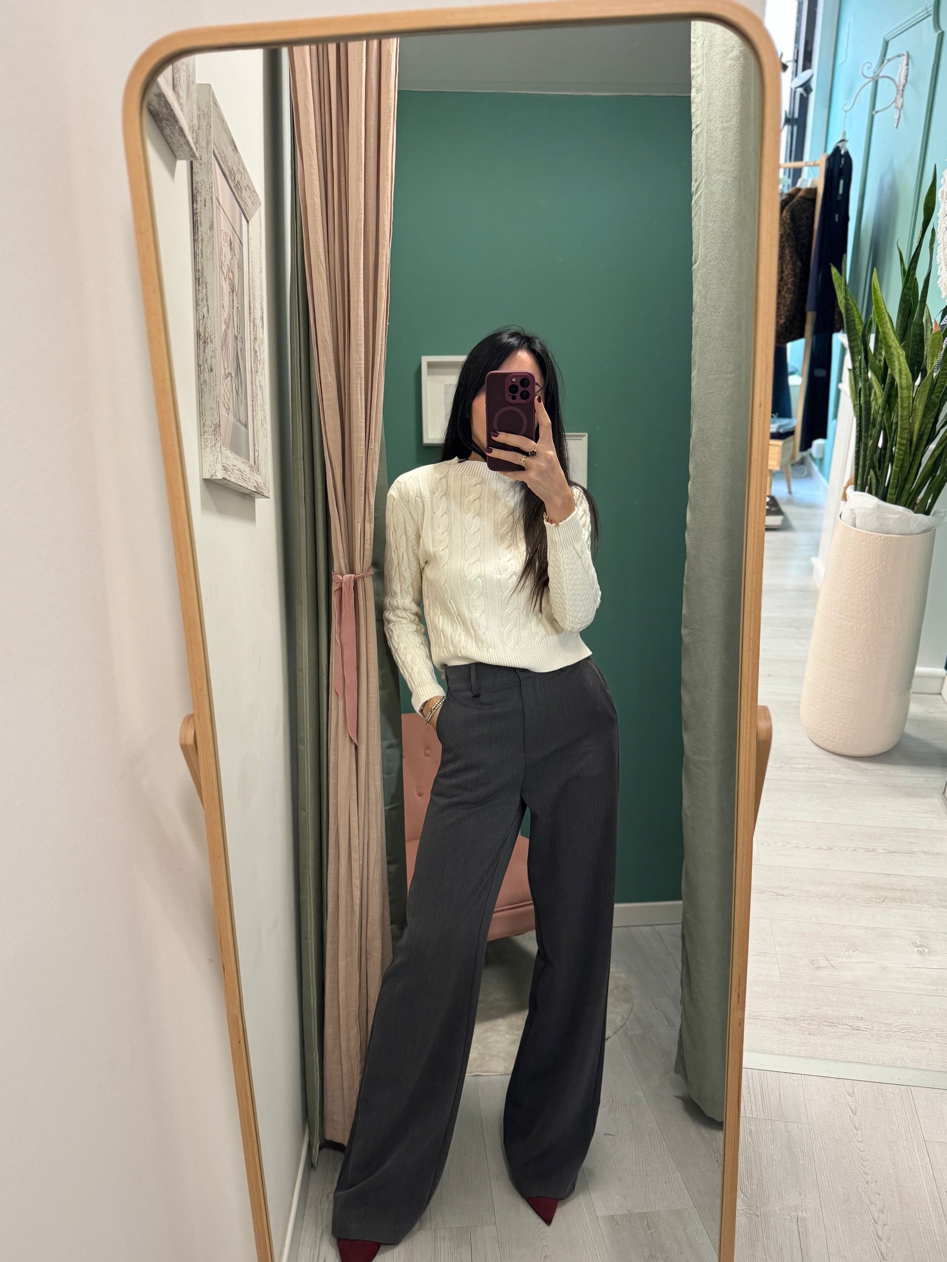 Pantalone caldo ampio, taglio dritto con elastico dietro. In misto viscosa