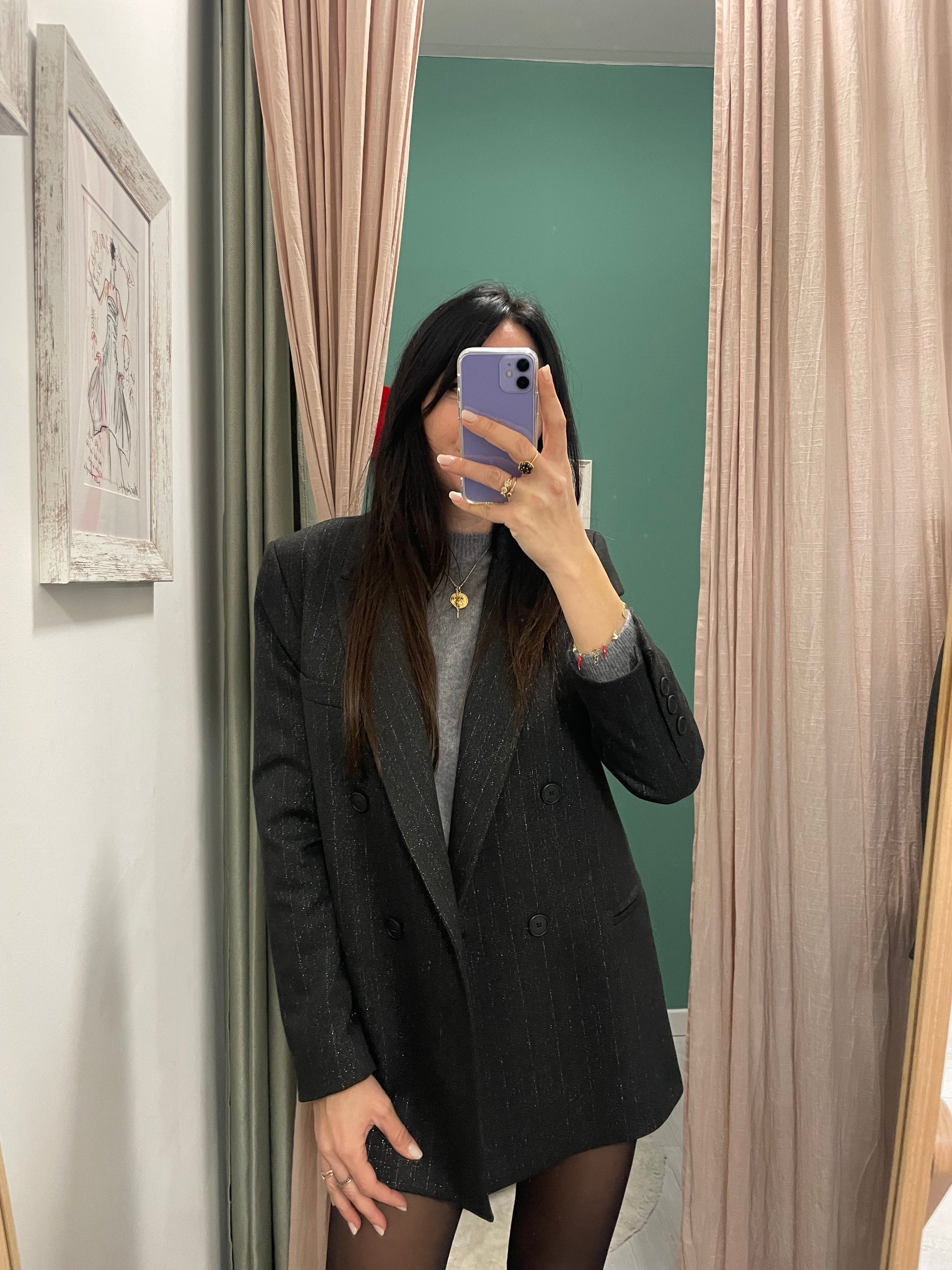 Giacca doppio petto gessata lurex