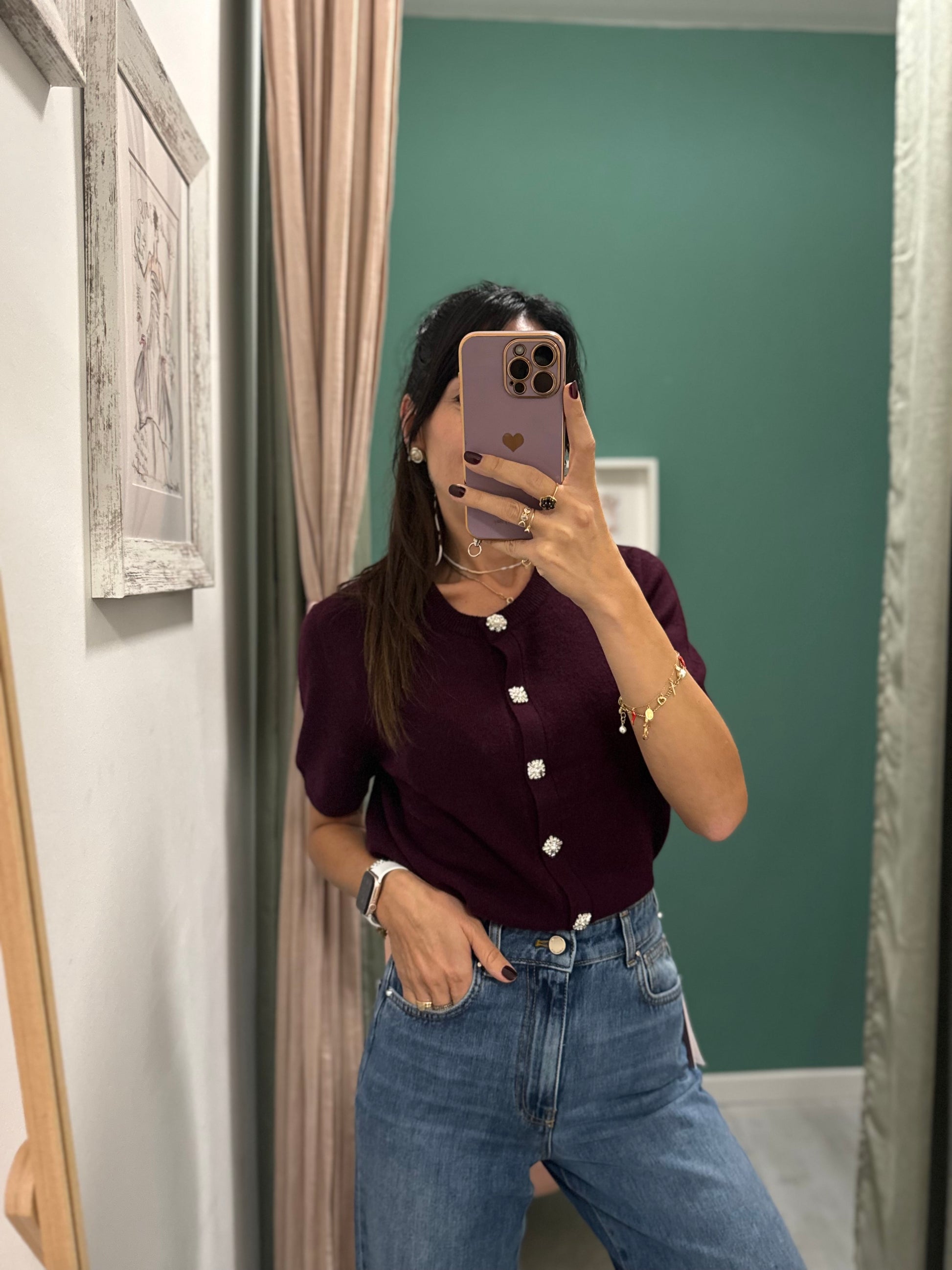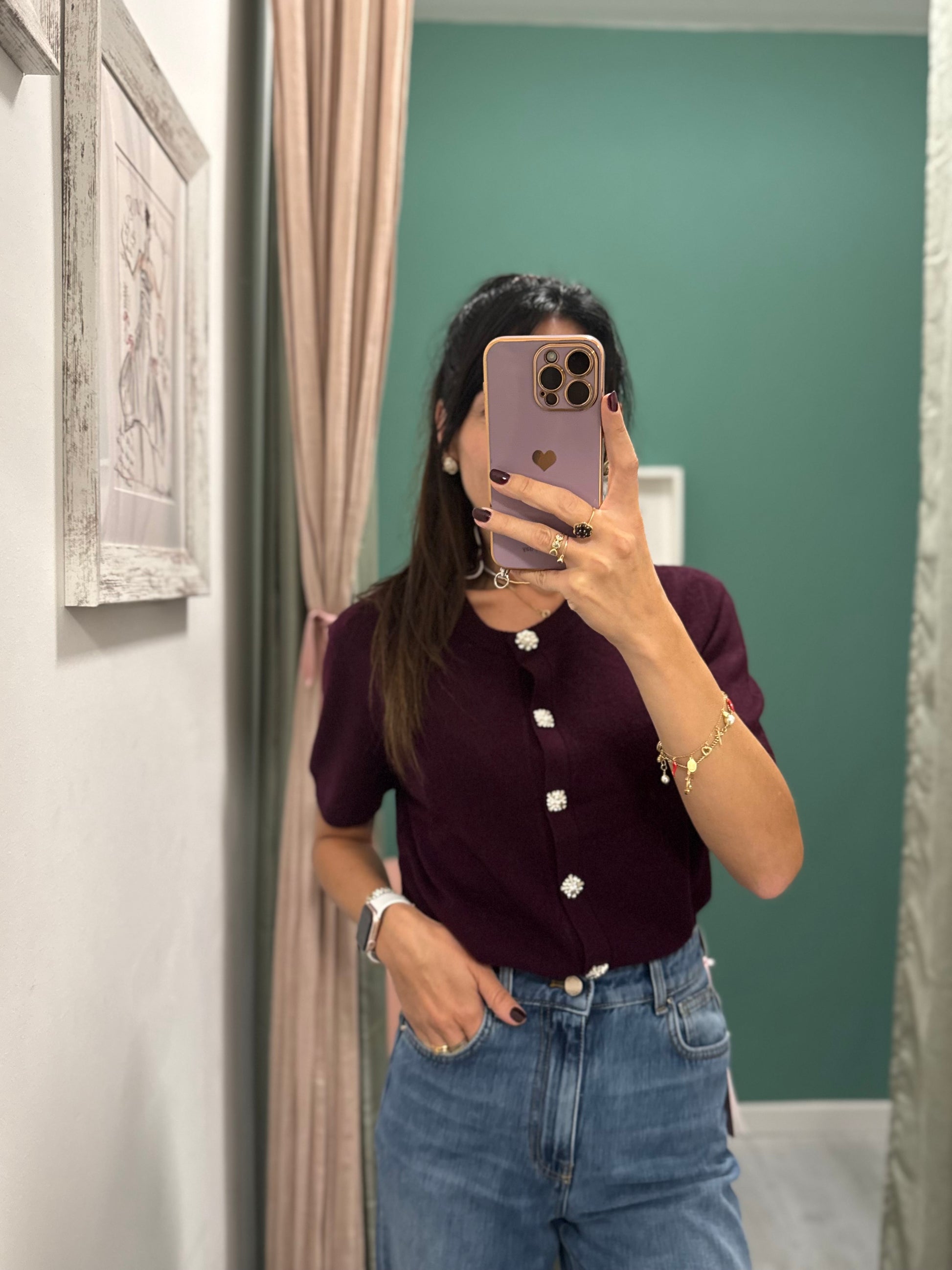 Middlemist - cardigan mezza manica con bottoni a gioiello tg unica
