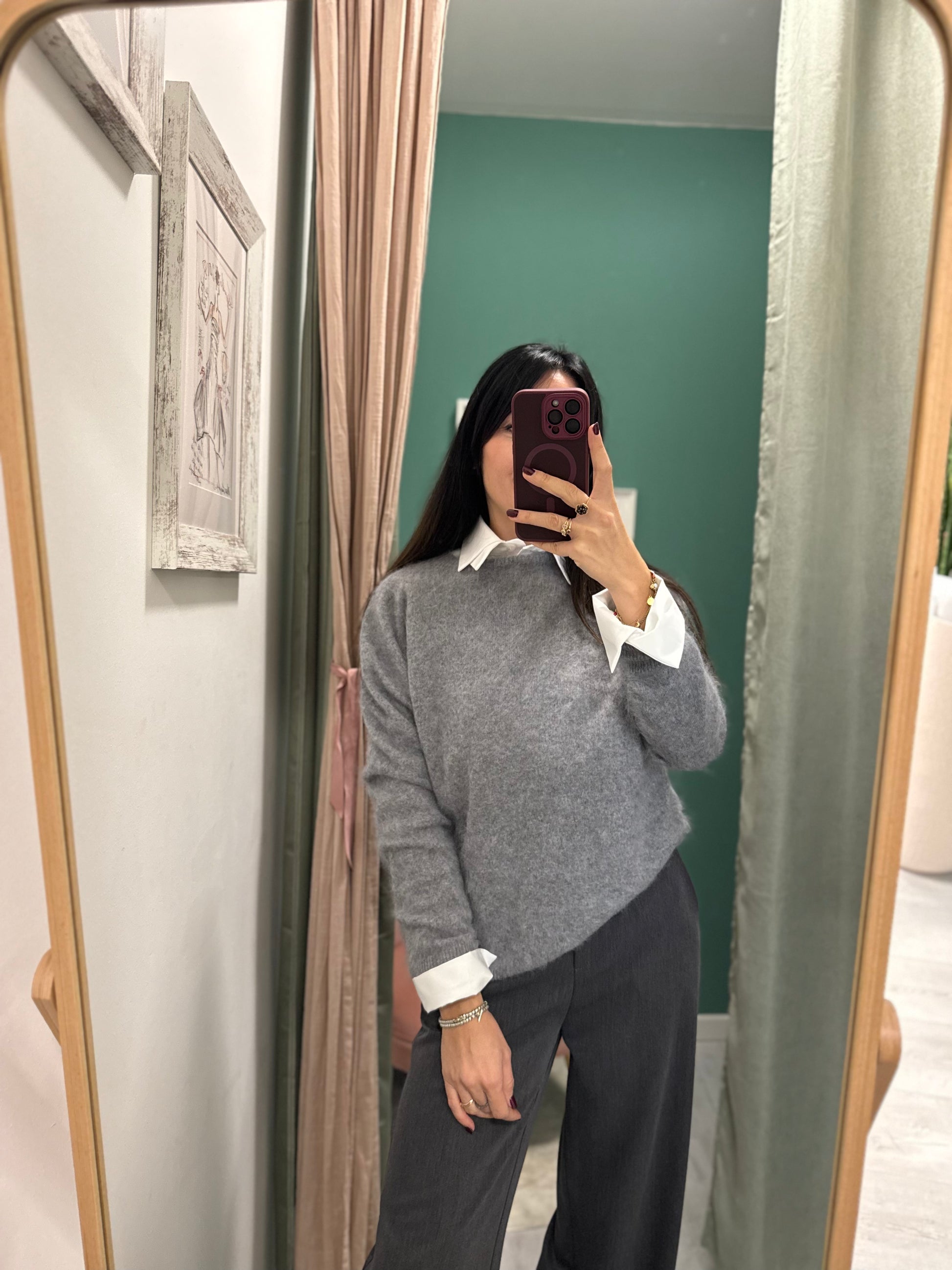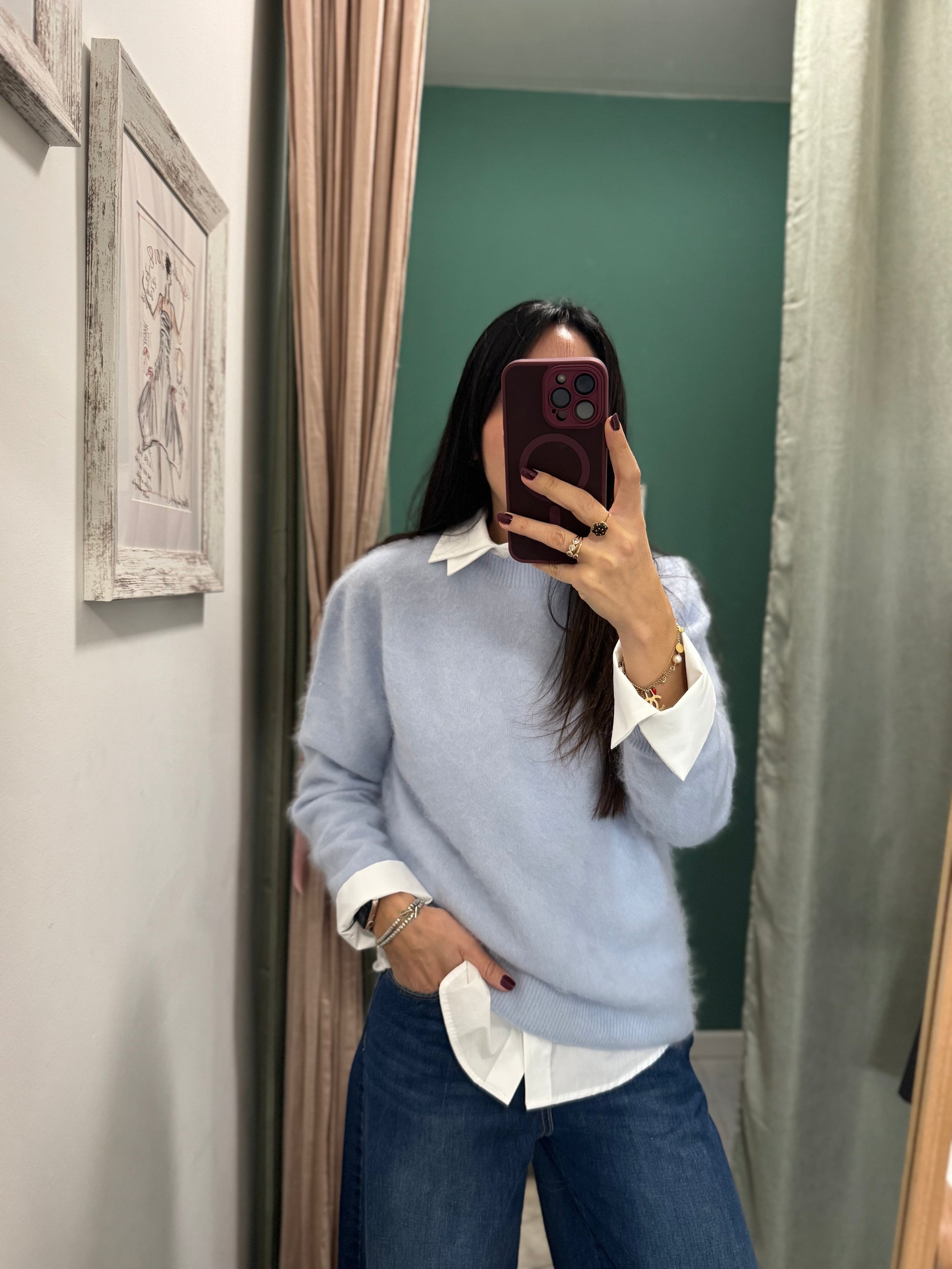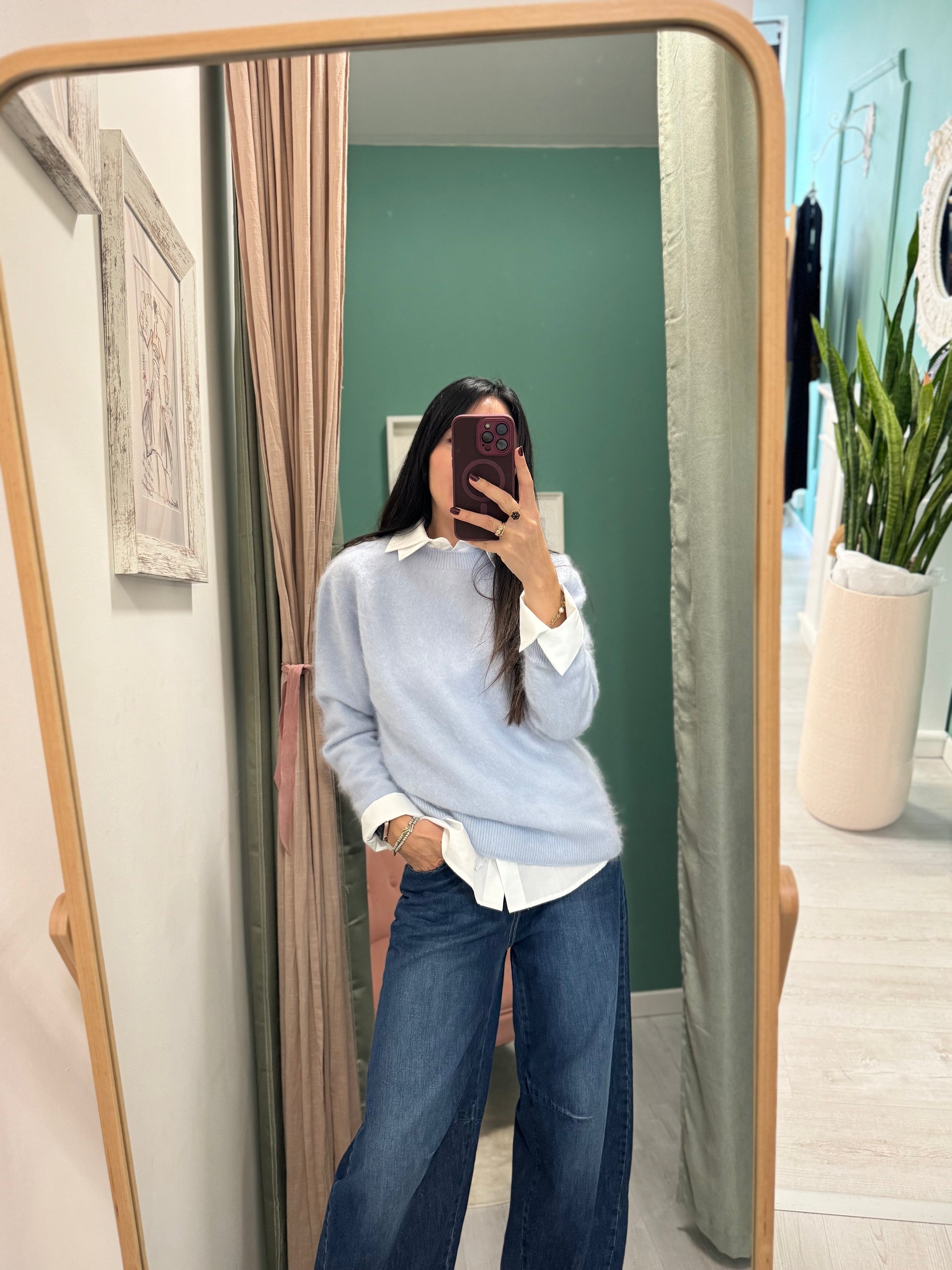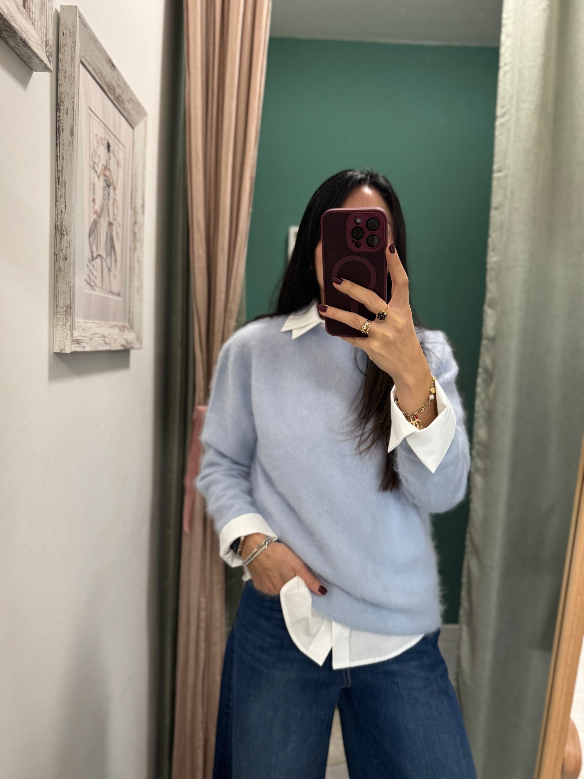 Maglioncino in misto lana, cachemire e seta. Molto morbido e caldo. Disponibile in due colori.