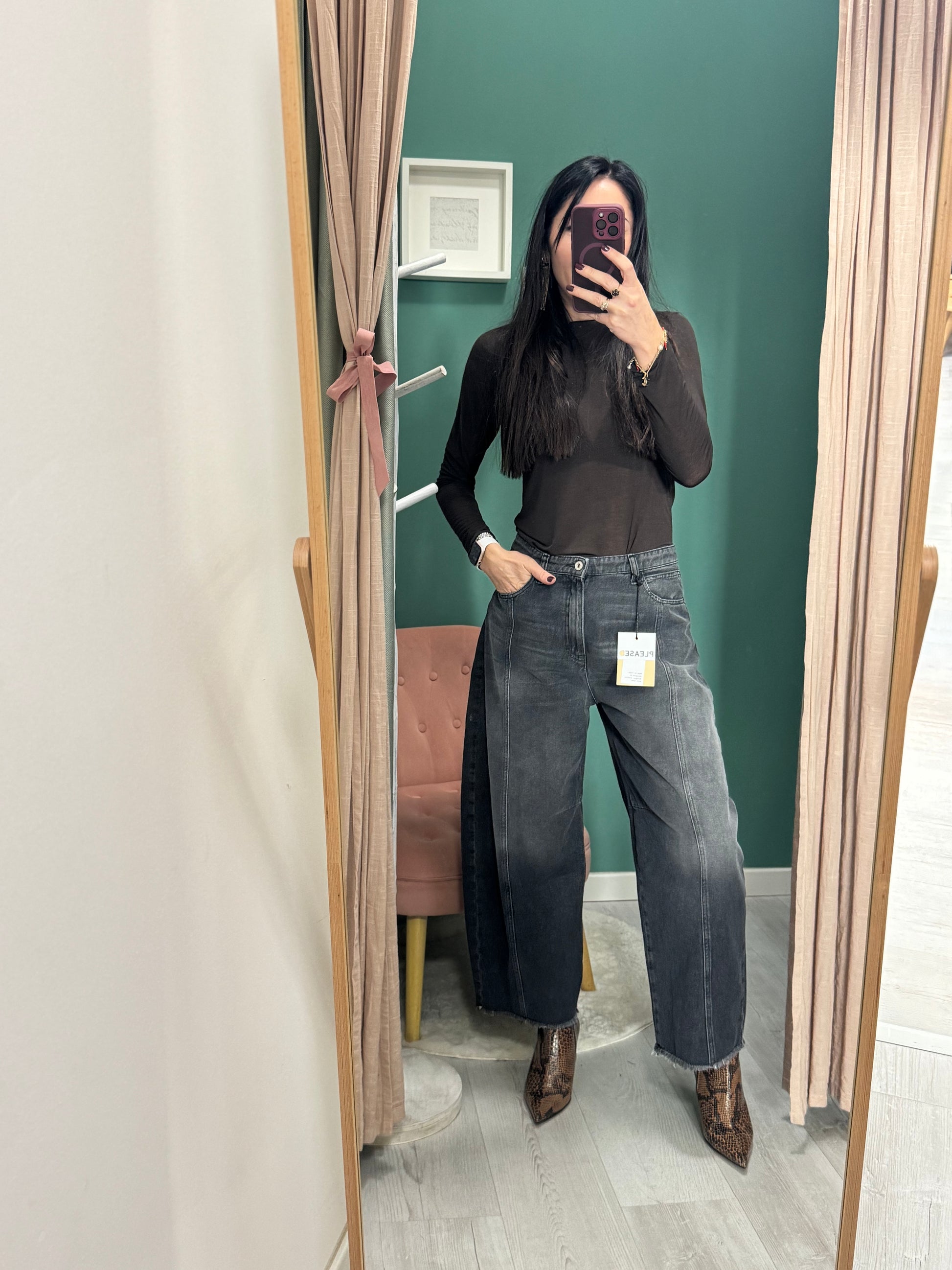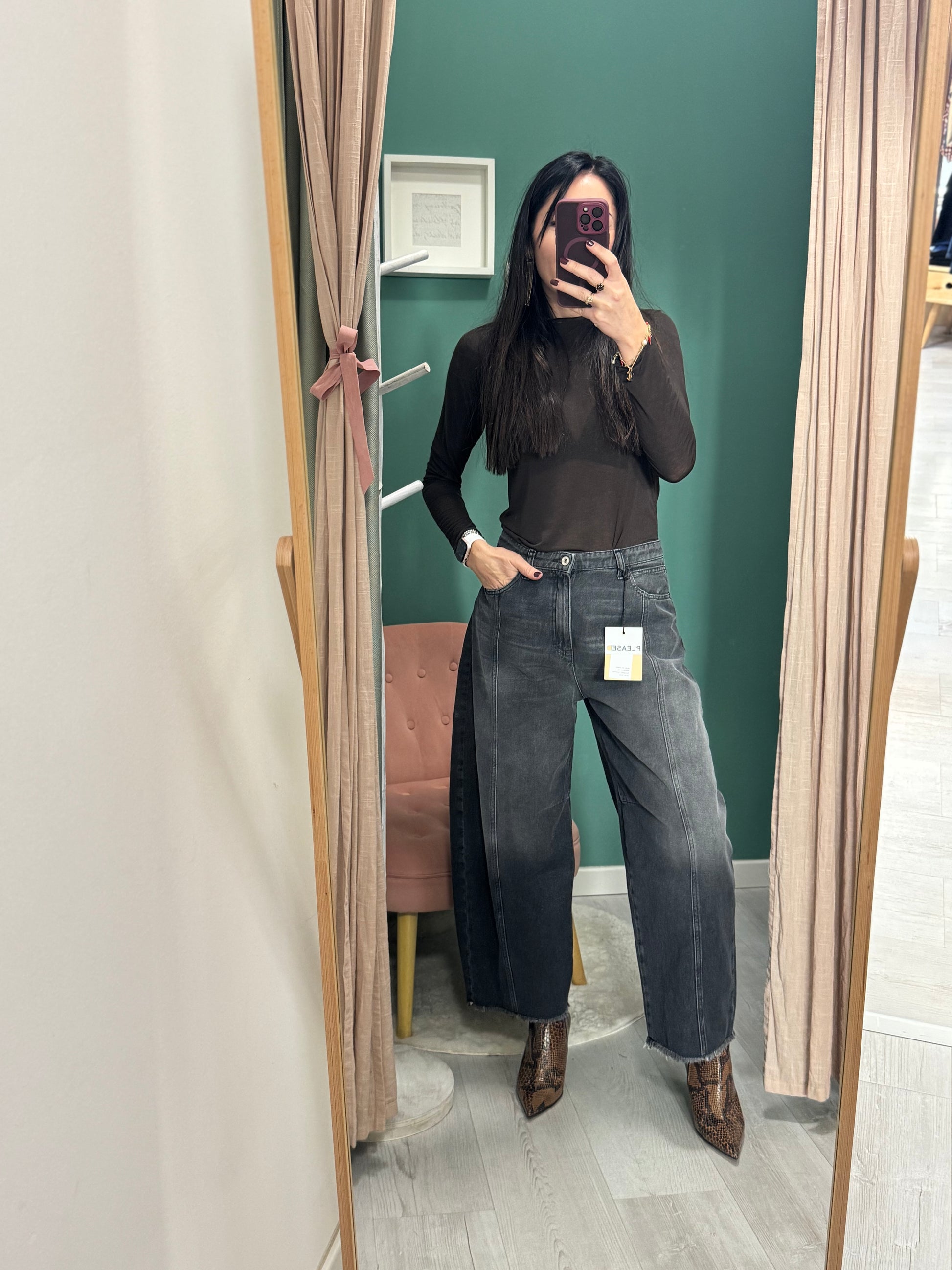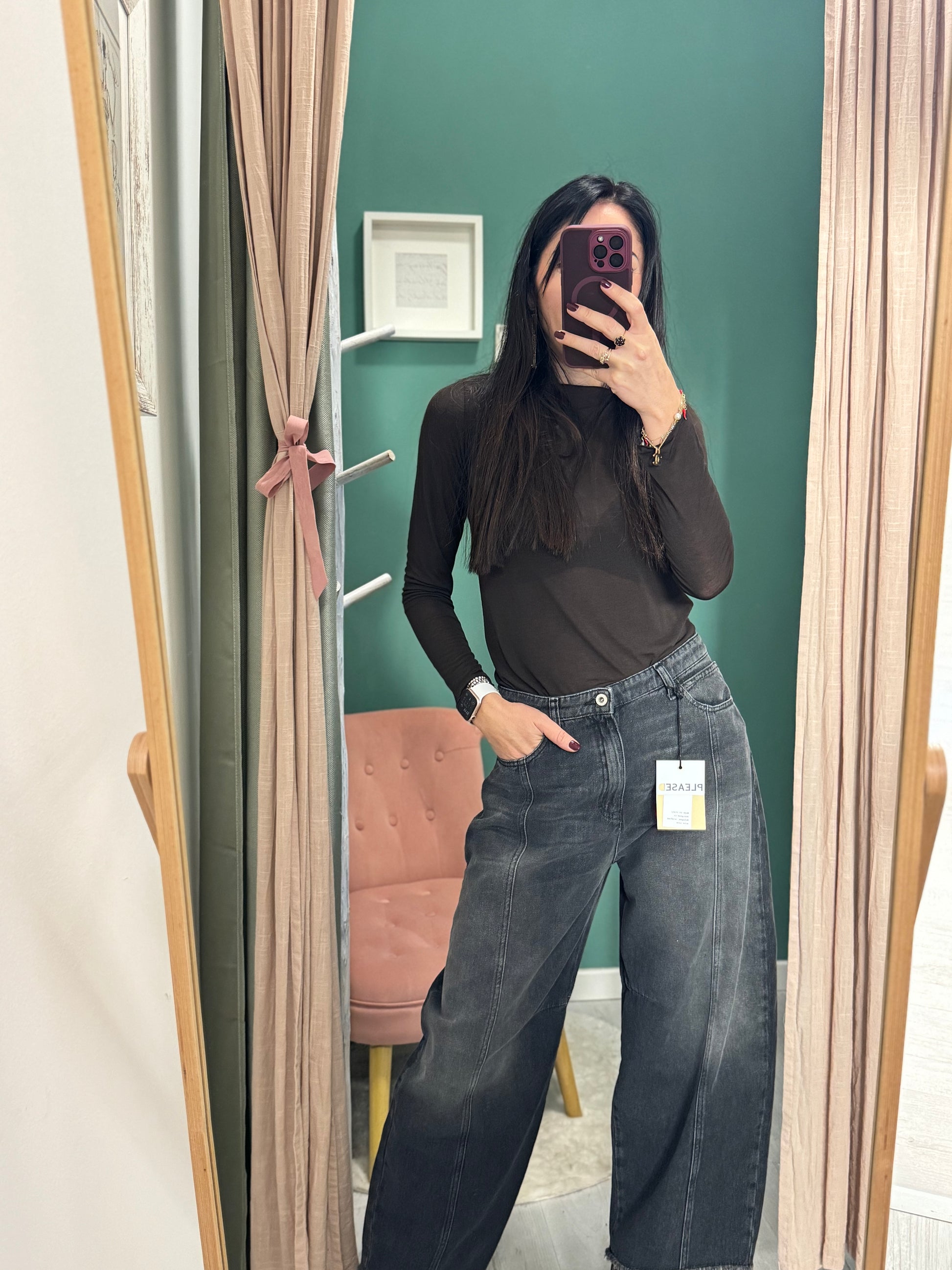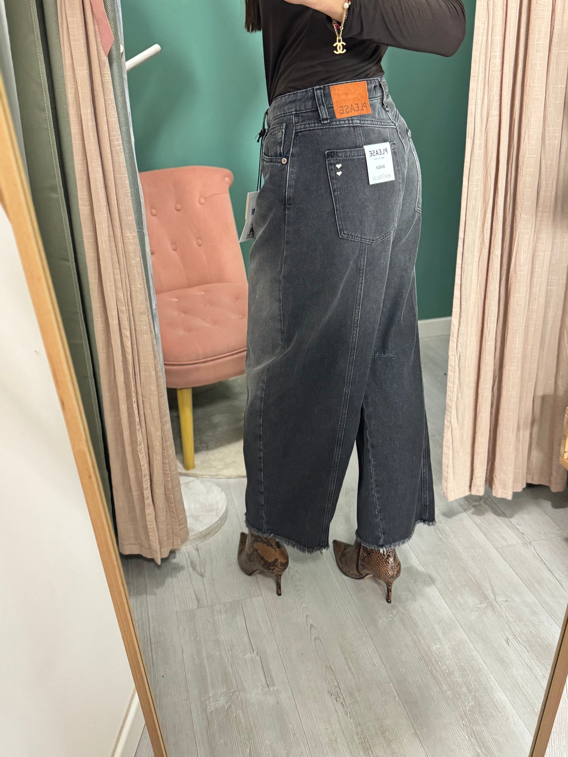 PLEASE - Jeans barrel sfrangiato sul fondo