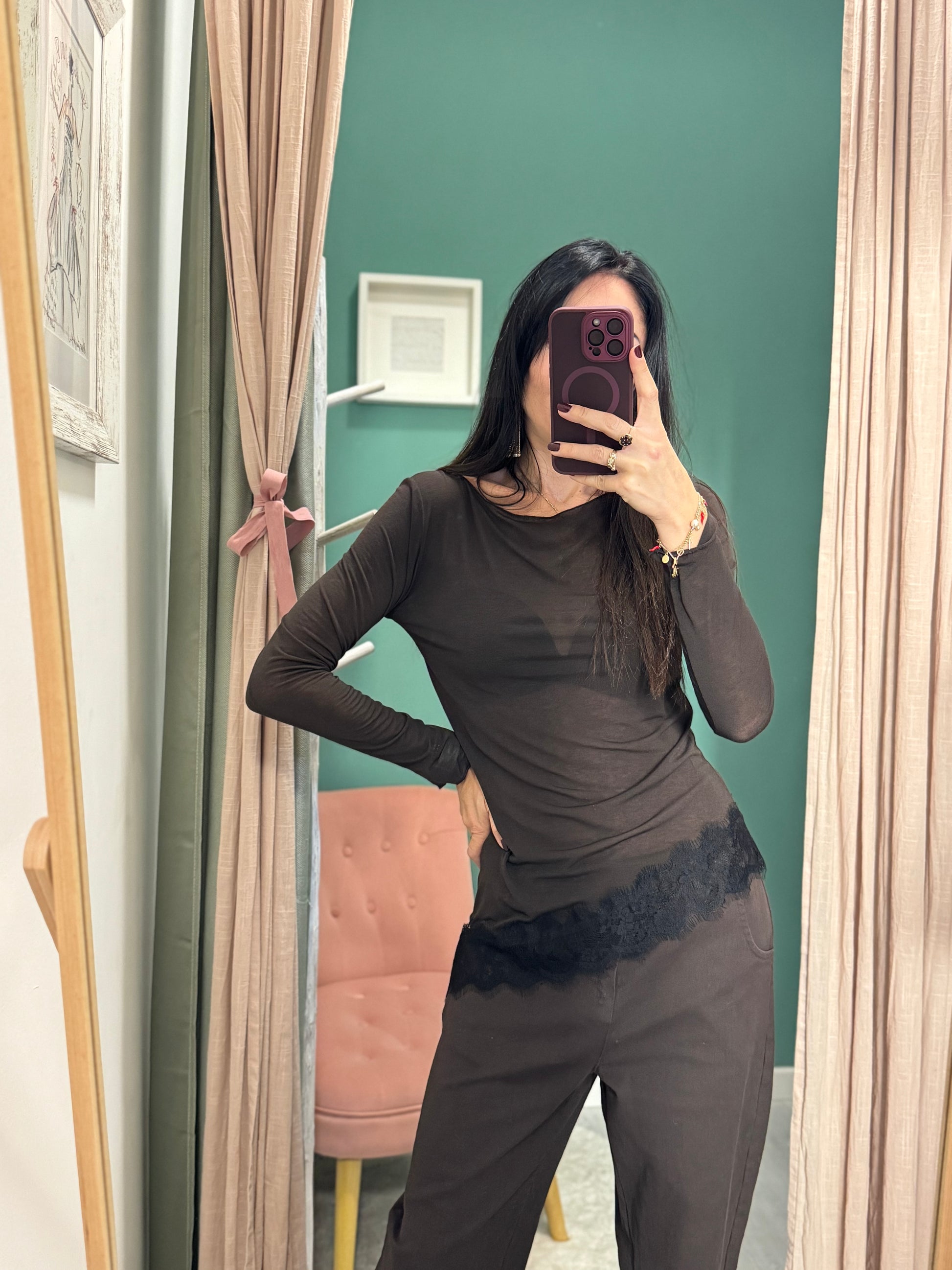Maglia scollo a barca con pizzo
